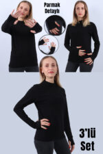 KADIN BALIKÇI BOĞAZLI PARMAK DETAYLI UZUN KOLLU BODY 3LÜ SET