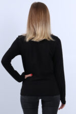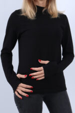KADIN BOĞAZLI PARMAK DETAYLI UZUN KOLLU BODY SİYAH 3LÜ SET